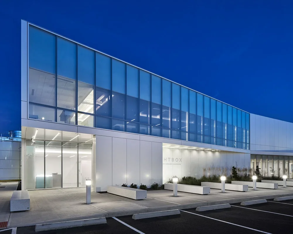 The Lightbox project is a new two-story state-of-the-art laboratory and manufacturing facility producing commercial gem-quality diamonds. The approximately 50,000 SF building utilizes a structural steel framing gravity system, a steel buckling-restrained braced frame lateral system, and a spread footing foundation system. The spread footing foundation system includes a system of gridded grade beams interconnecting the individual spread footings to help mitigate the site’s potential settlements due to discontinuous liquifiable sublayers.